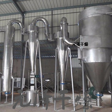 這類物料具有特殊性:比重輕,加料難,易燃,易爆。針對(duì)此情況,我公司技術(shù)部門開(kāi)發(fā)研制的新型氣流干燥機(jī),在原氣流干燥機(jī)的基礎(chǔ)上改進(jìn)了加料形式,解決了“架橋”現(xiàn)象。創(chuàng)新改進(jìn)了旋風(fēng)分離器,解決了物料翻滾不出料的現(xiàn)象。系統(tǒng)集成,控制先進(jìn),超溫報(bào)警連鎖關(guān)閉熱源,有效解決了溫度過(guò)高引起的燃燒爆炸問(wèn)題。